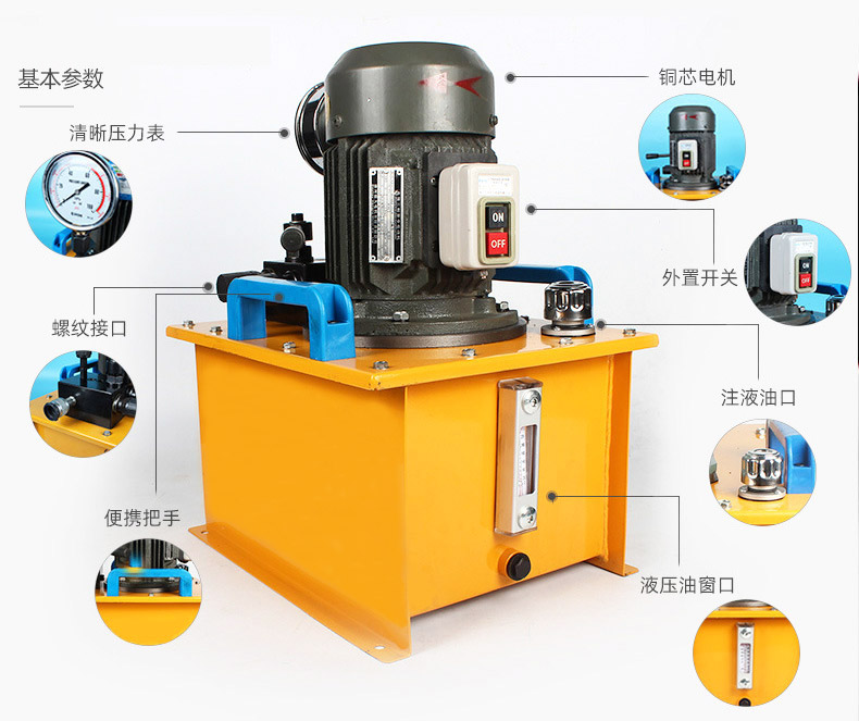 超高壓電動油泵,是由柱塞泵、控制閥、油箱、電機、儀表等組成的一種獨立完整的液壓動力裝置。具有體積小重量輕、結構簡單、操作方便、工作壓力高等特點。在配備各種專用機具的情況下,可實現起重、彎曲、校直、擠壓、剪刀、鉚接、拆卸、壓裝等工作要求,作為液壓動力部件,還可以裝置在其他機械設備中。本泵可以實現停機保壓,在外油路不泄漏的條件下,停機保壓5分鐘,壓力下降不超過5MPa。
