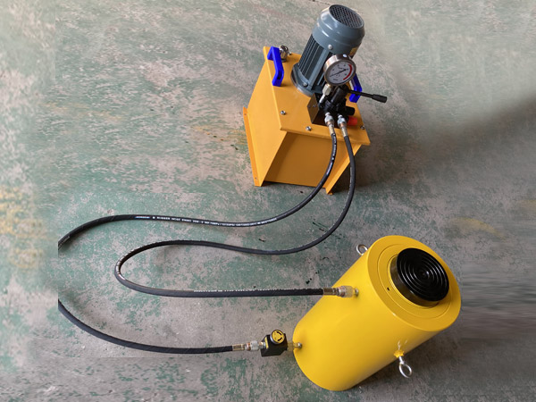 5、使用時(shí)先將手動(dòng)泵的快速接頭與頂對(duì)接,然后選好位置,將油泵上的放油螺釘旋緊,即可工作。將放油螺釘旋松,油缸卸荷。