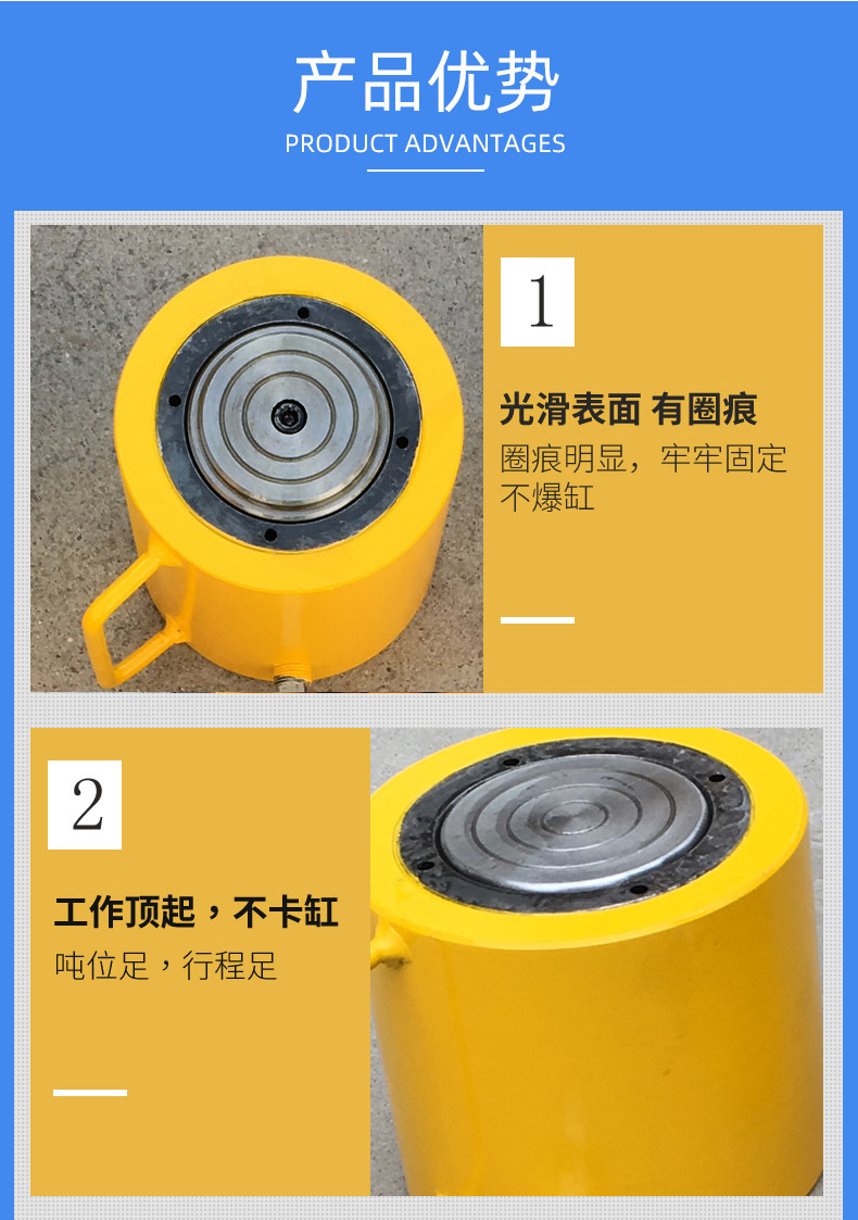 6、千斤頂將重物頂升后,應(yīng)及時用支撐物將重物支撐牢固,禁止將千斤頂作為支撐物使用。如需長時間支撐重物請選用CLL自鎖式千斤頂 。